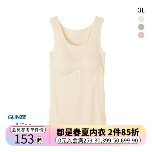 郡是GUNZE内衣有胸垫无痕柔软舒适亲肤春夏内搭打底吊带背心女
