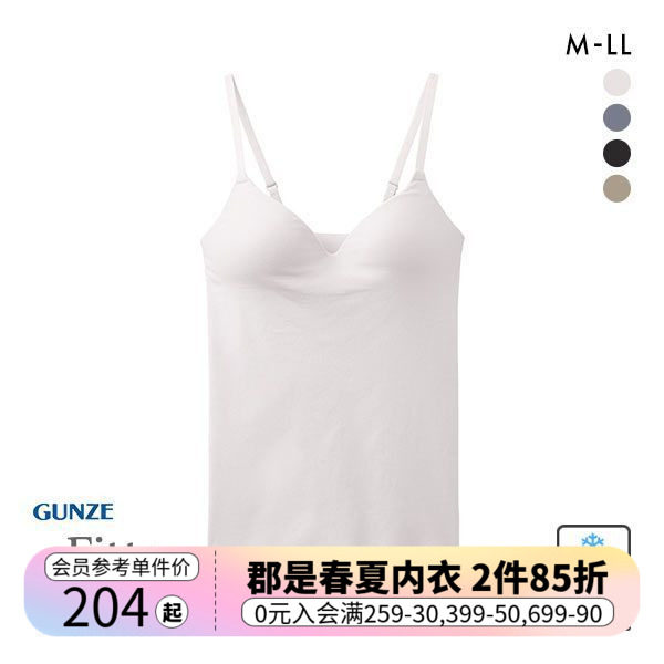 郡是GUNZE女士内衣吸汗速干成型一体罩杯春夏轻薄少女吊带背心