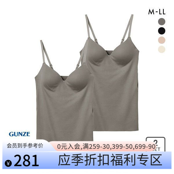 郡是GUNZE内衣日本制内衣有罩杯集中侧收防外扩柔软吊带背心女2件