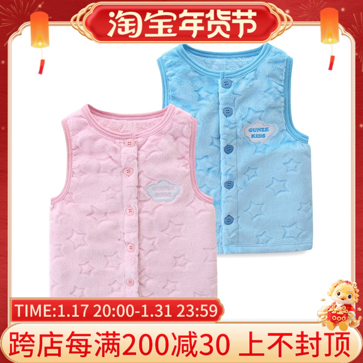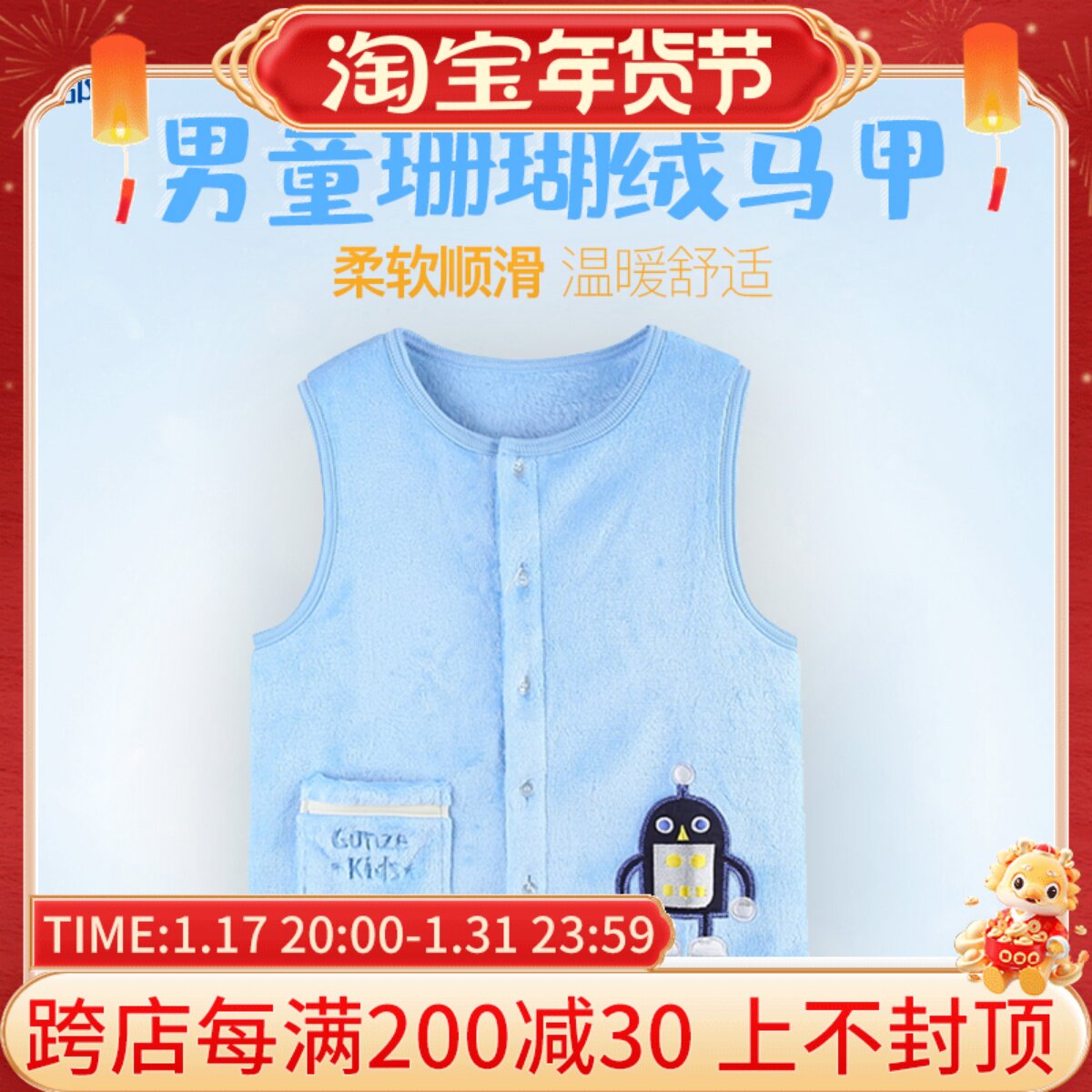 日本郡是GUNZE男童珊瑚绒马甲2023秋冬新款儿童外穿保暖坎肩背心