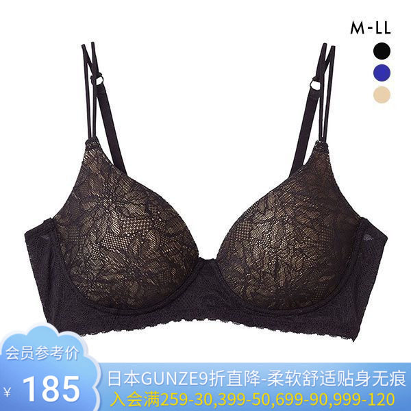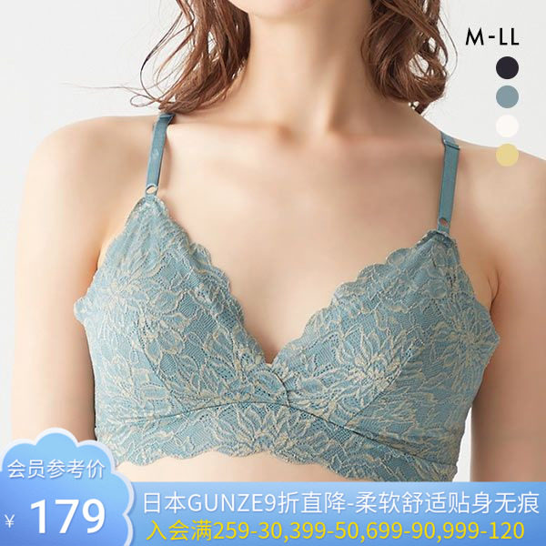 日本郡是GUNZE内衣无钢圈上托防下垂无痕全蕾丝舒适背心文胸女