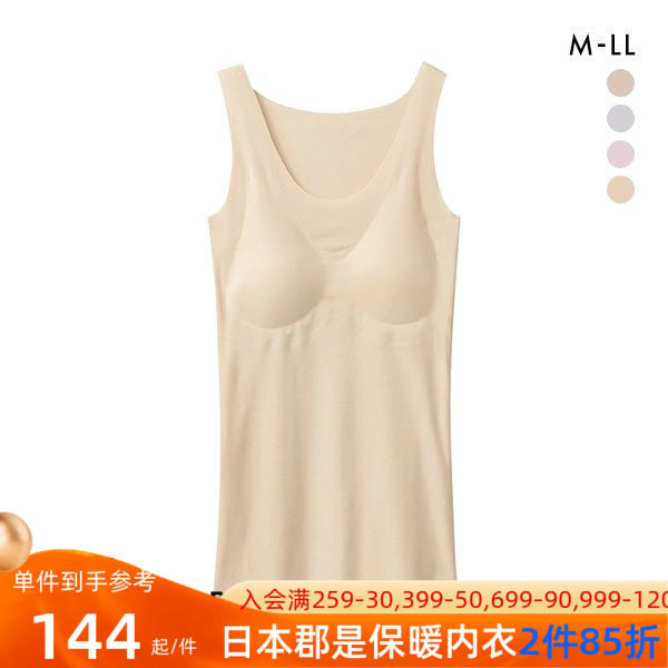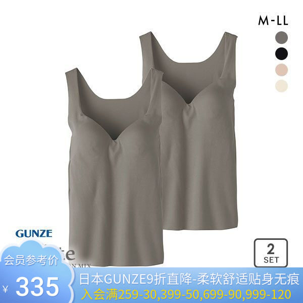 郡是GUNZE内衣日本制有罩杯无缝接敏感肌柔软透气打底背心女2件装