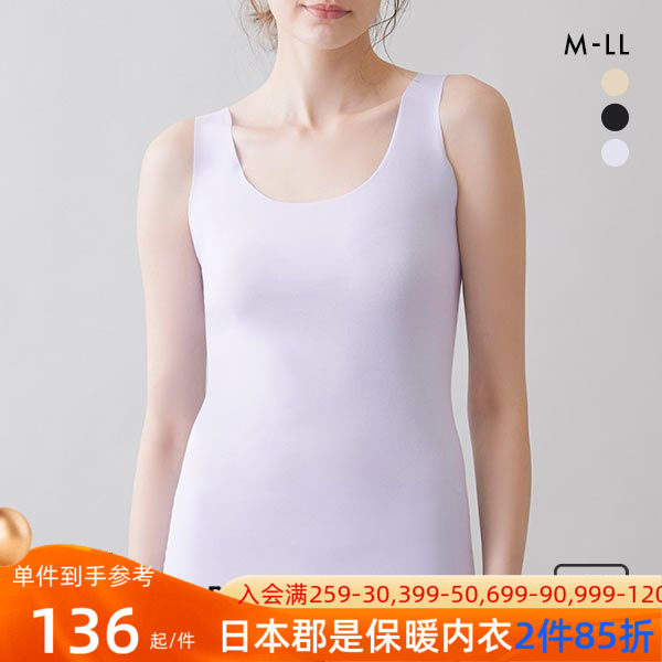 郡是GUNZE保暖内衣女日本制吸湿发热内里加绒防寒圆领内搭背心