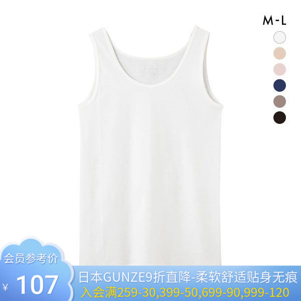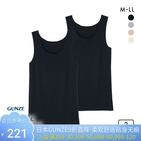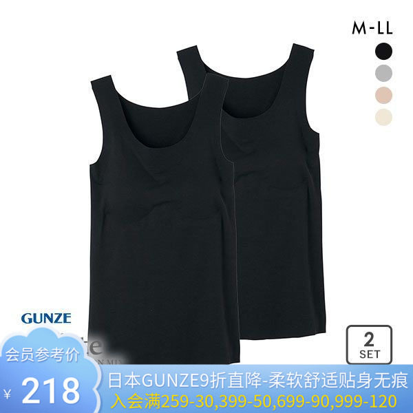 郡是GUNZE内衣日本制舒适无缝接敏感肌柔软透气打底背心女2件装