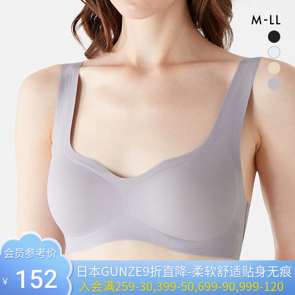 郡是GUNZE内衣日本制无钢圈侧收聚拢无缝接舒适无痕背心式文胸女