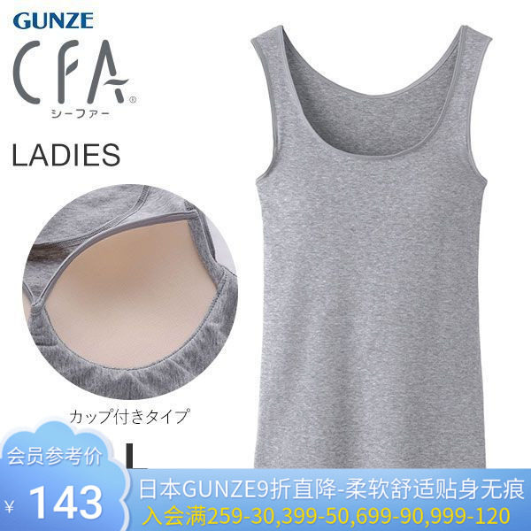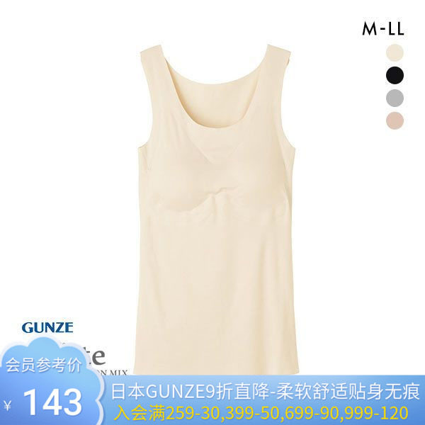 郡是GUNZE内衣日本制有罩杯无缝接敏感肌柔软透气夏季打底背心女