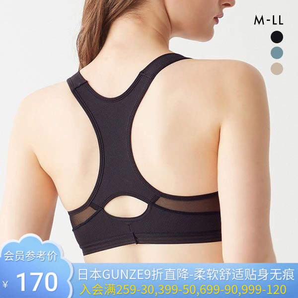 日本郡是GUNZE运动内衣女无钢圈矫正姿势吸汗速干透气背心文胸