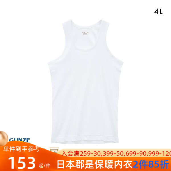 郡是GUNZE男士背心日本制纯棉内衣抗菌防臭干净整洁时尚背心上衣