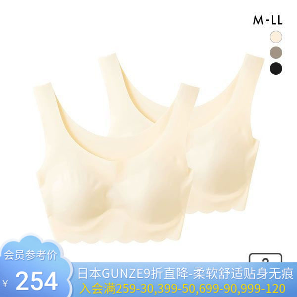 郡是GUNZE内衣无钢圈日本制舒适聚拢一片式无痕背心文胸女2件装