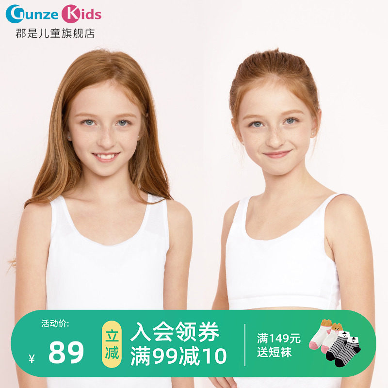 日本郡是GUNZE儿童内衣莫代尔无痕背心少女文胸二阶段带可拆胸垫
