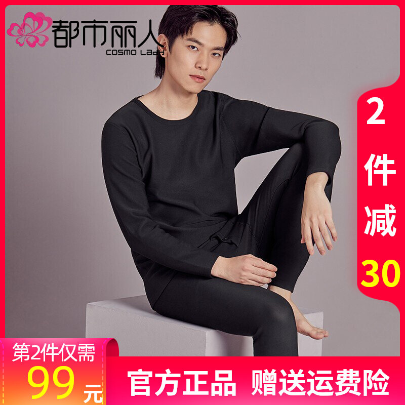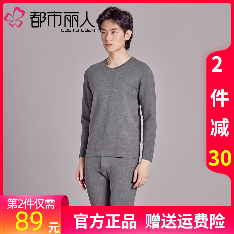 都市丽人官方旗舰店正品男士秋衣秋裤套装圆领薄款打底保暖内衣