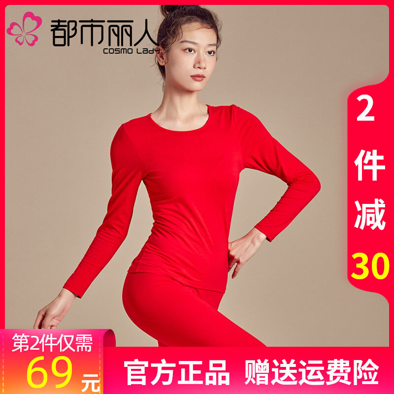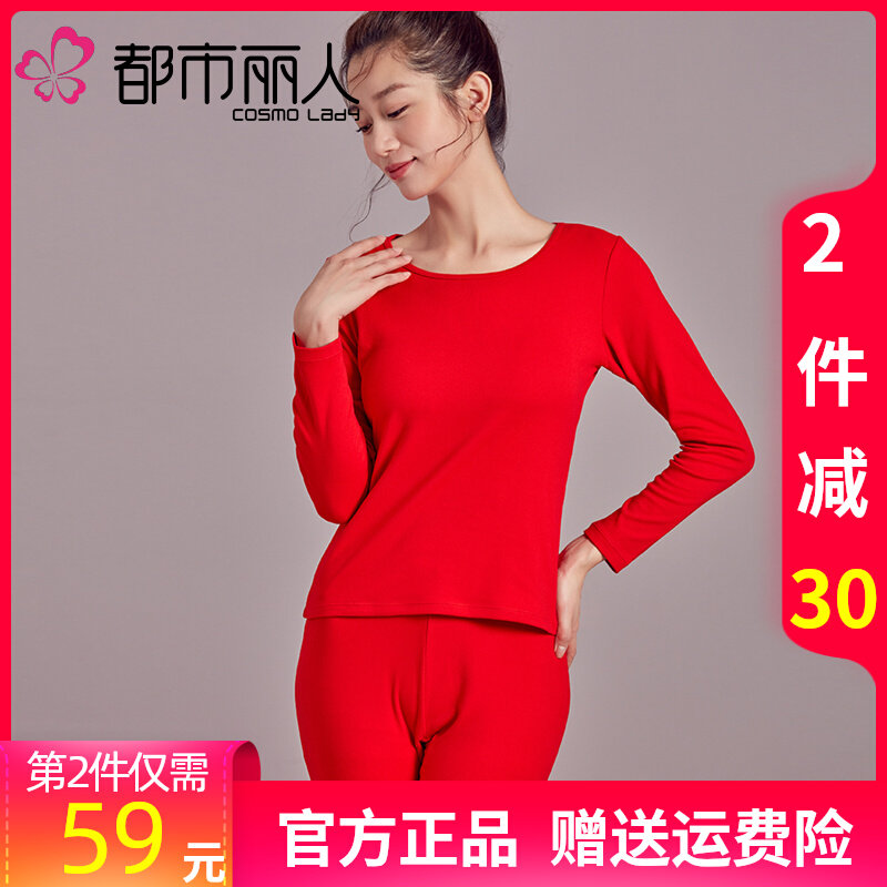 都市丽人官方旗舰店本命年红色保暖内衣套装女秋冬季中厚秋衣秋裤