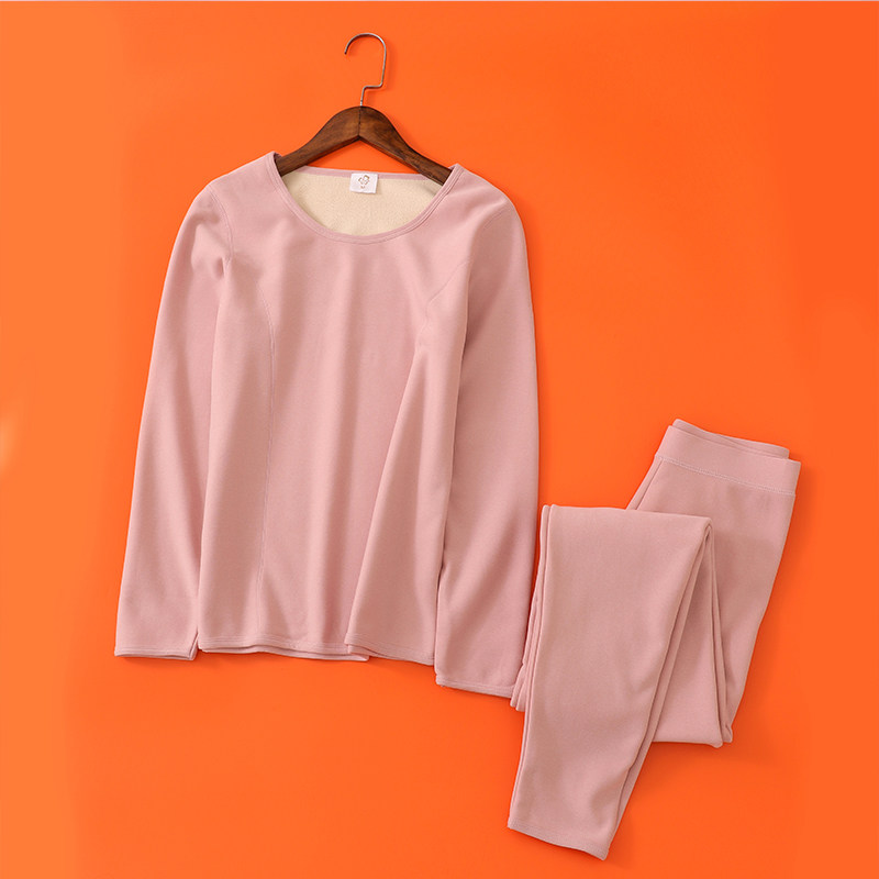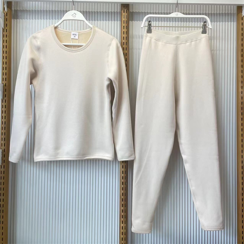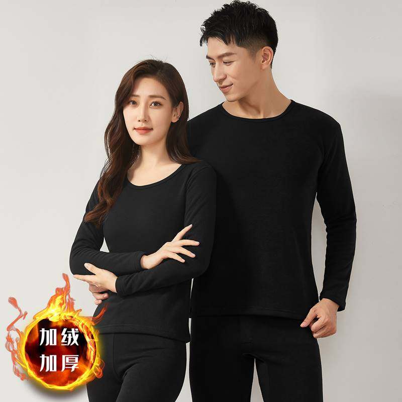 都市丽人加绒加厚秋衣秋裤玻尿酸防风无痕情侣男女士打底保暖套装