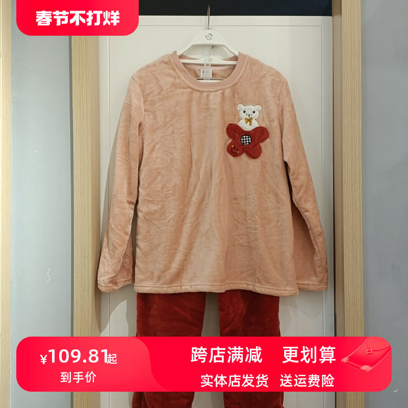 都市丽人LH32J4女法兰绒睡衣圆领套头可爱卡通保暖长袖长裤家居服