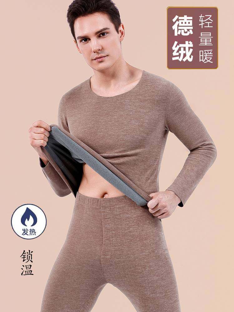 都市丽人德绒保暖内衣男套装无痕自发热加绒加厚秋衣秋裤男修身抗