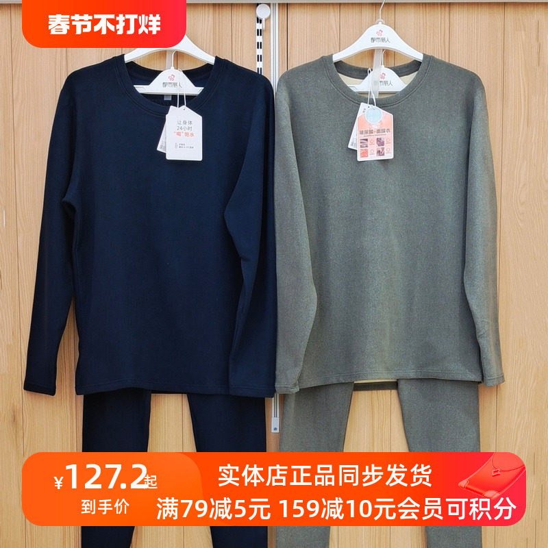 都市丽人远红外元气内衣玻尿酸磨毛打底罗纹绒情侣秋衣裤保暖套装