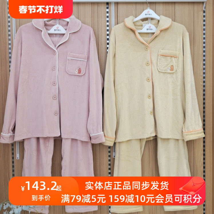 都市丽人LH30C1女士海岛绒抗静电保暖开衫翻领长袖长裤家居服套装