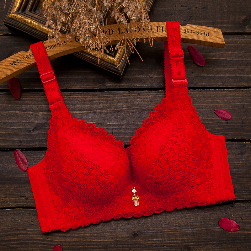 新款红色内衣文胸聚拢小胸罩收副乳性感都市厚薄款无钢圈丽人少女