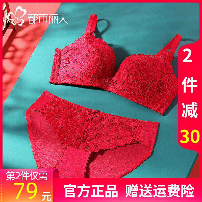都市丽人官方旗舰店红色内衣内裤女套装小胸聚拢性感法式少女文胸