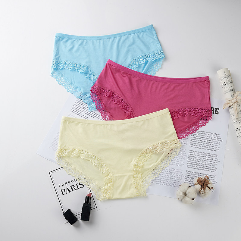 莫代尔女蕾丝中腰三角内裤头学生都市少女比纯棉透气隐形无痕丽人