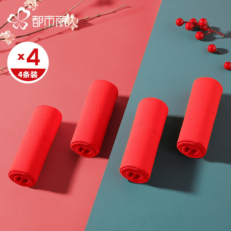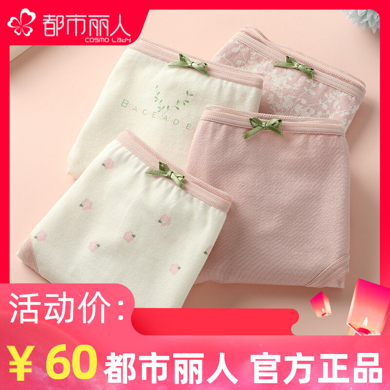 都市丽人纯棉抗菌里裆印花甜美少女棉质舒适透气女内裤组合4条装