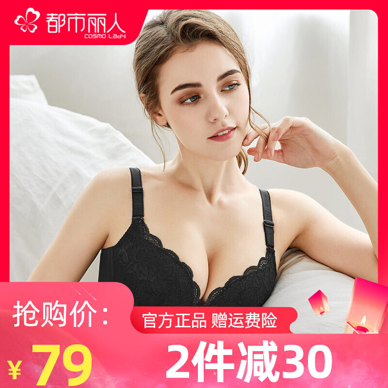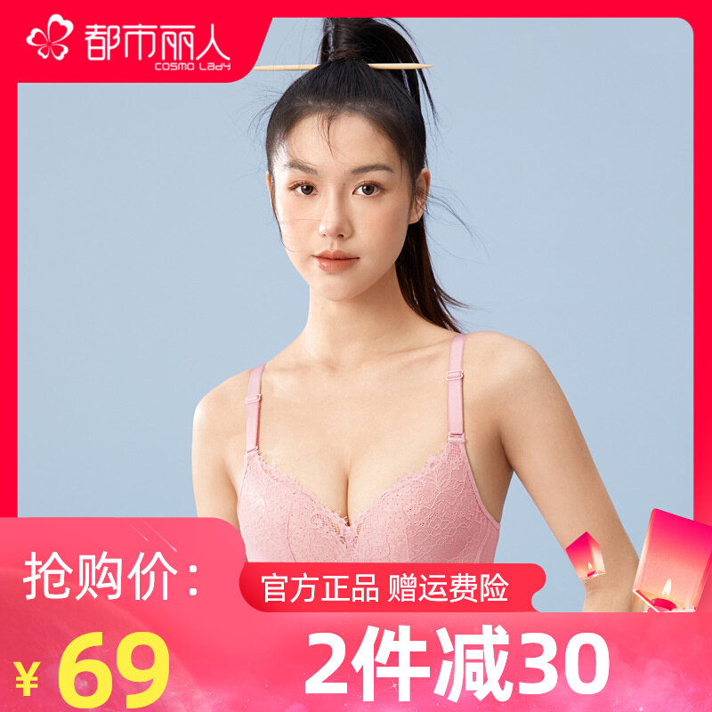 都市丽人官方无钢圈性感蕾丝文胸少女内衣大小胸罩杯上托聚拢正品
