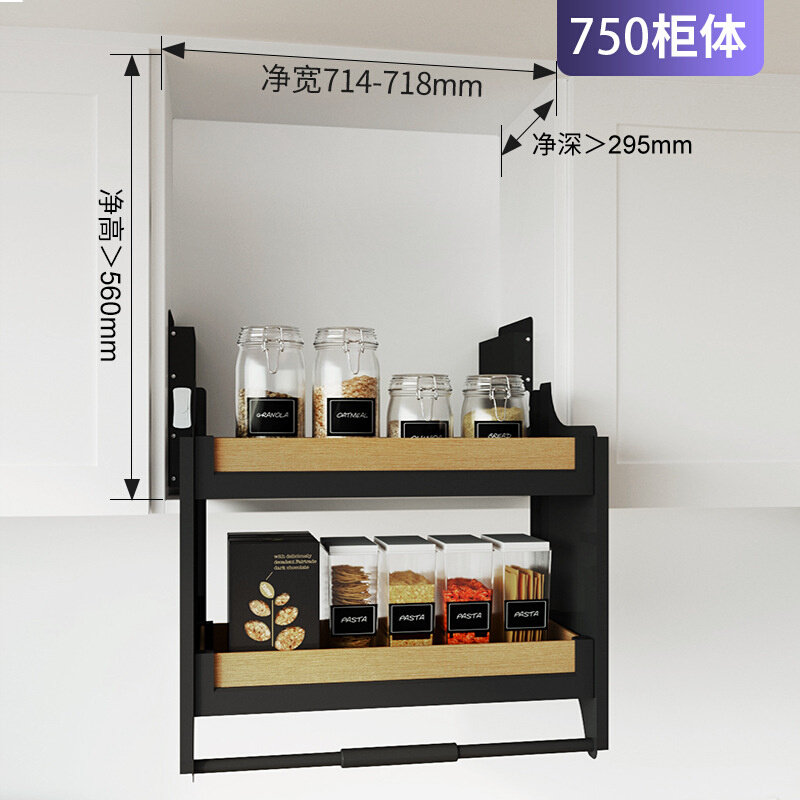 酷太厨房置物架双层橱柜收纳吊柜下拉挂架墙上调味料锅架碗架拉篮