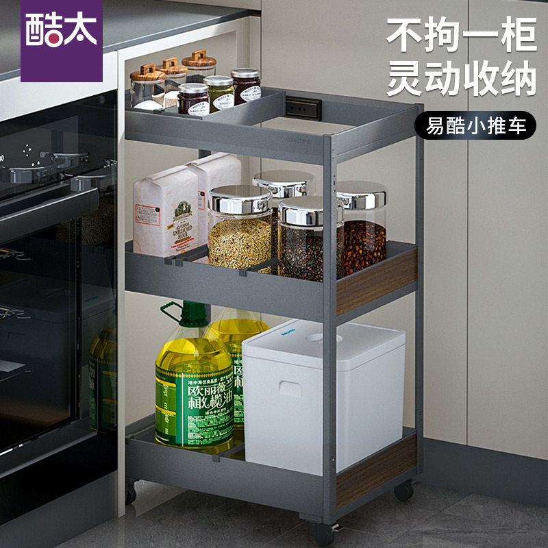酷太厨房置物架免安装铝合金多层落地可移动收纳架客厅多功能架子