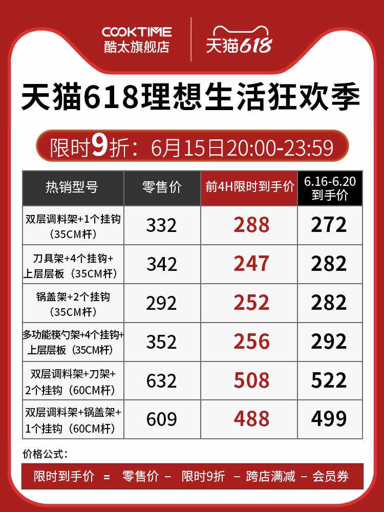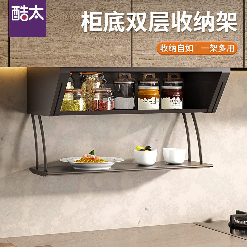 酷太厨房置物架柜底双层备餐架吊柜下拉折叠挂架调味料锅架碗架