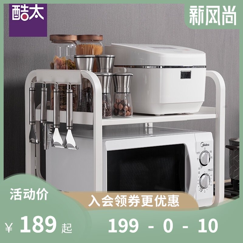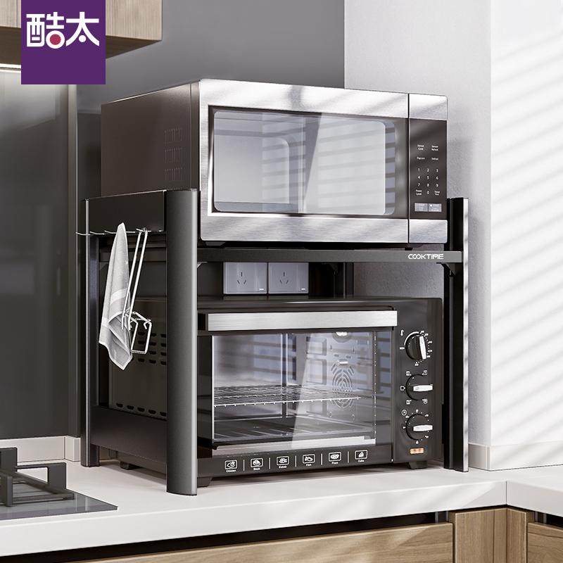 酷太厨房微波炉置物架家用双层架子大尺寸电饭锅收纳台面烤箱架子