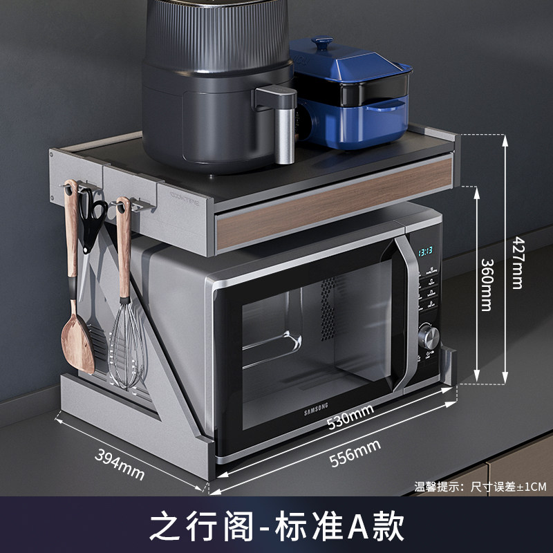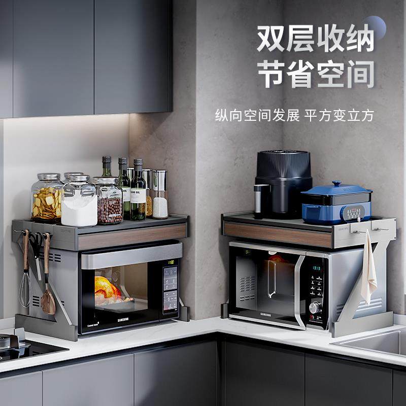 酷太微波炉置物架双层太空铝调y料收纳架厨房台面收纳家用烤箱架