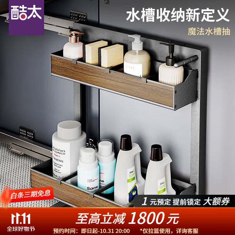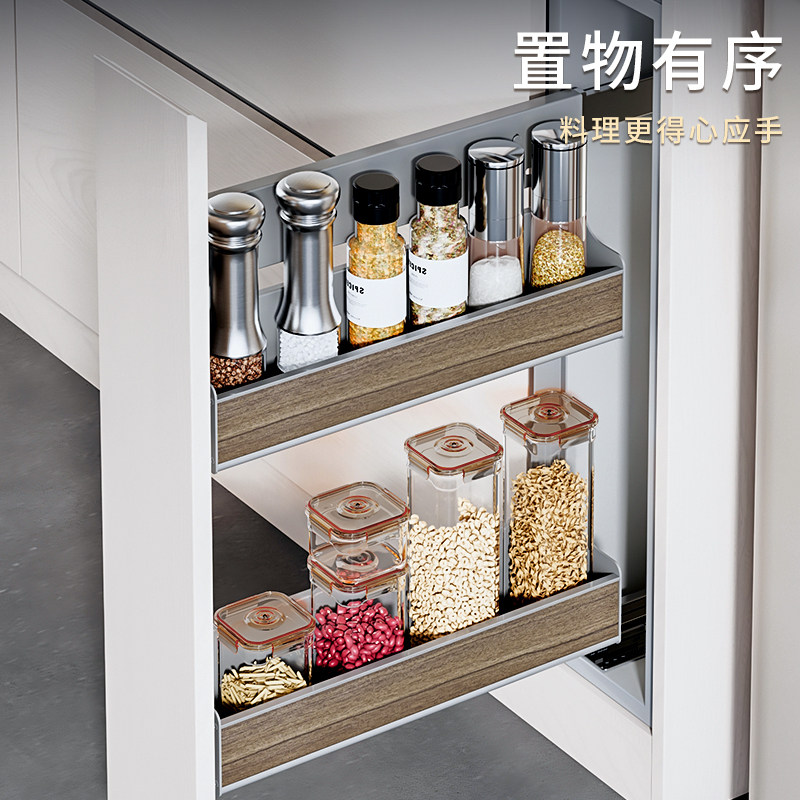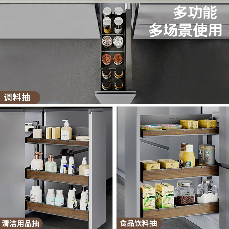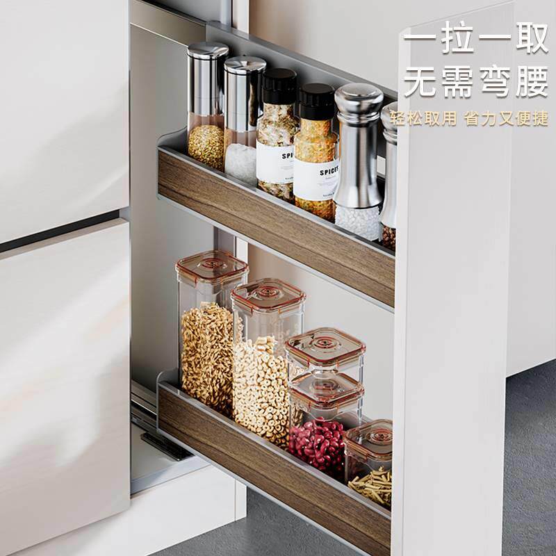 酷太厨房拉篮橱柜窄柜调料拉篮抽屉式柜内铝合金收纳置物架调味篮
