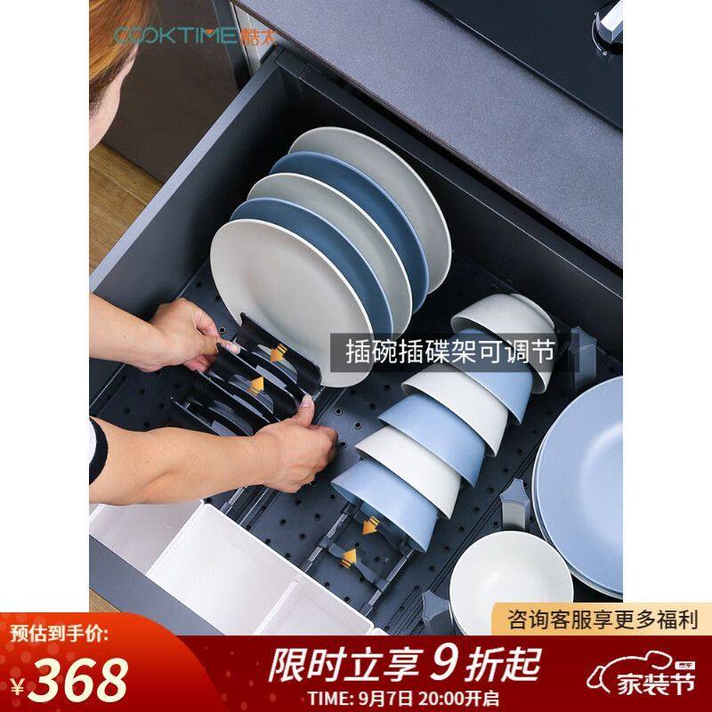 酷太(COOKTIME)厨房抽屉碗碟架家用餐具碗盘收纳置物架沥水碗柜