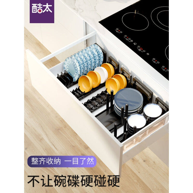 酷太碗碟收纳架厨房抽屉内置碗架柜内抽屉收纳分隔碗盘锅具置物架