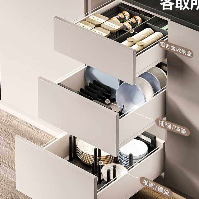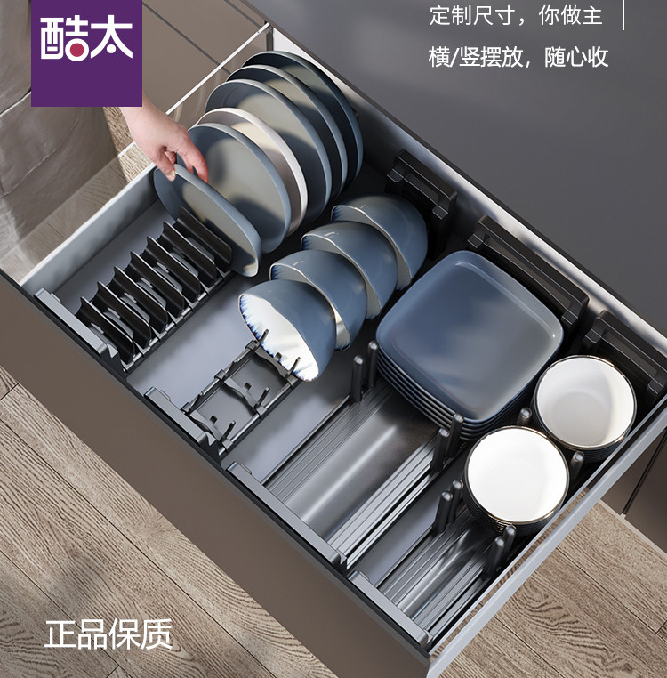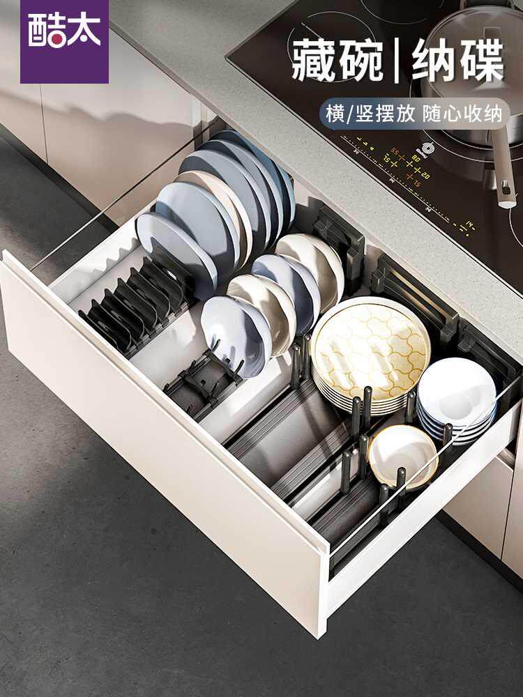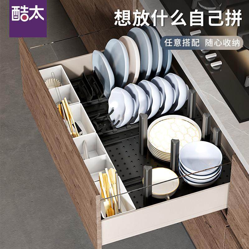酷太厨房碗碟收纳架抽屉内置碗架厨房抽屉收纳分隔碗碟盘子置物架
