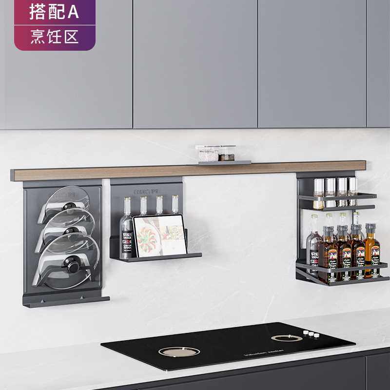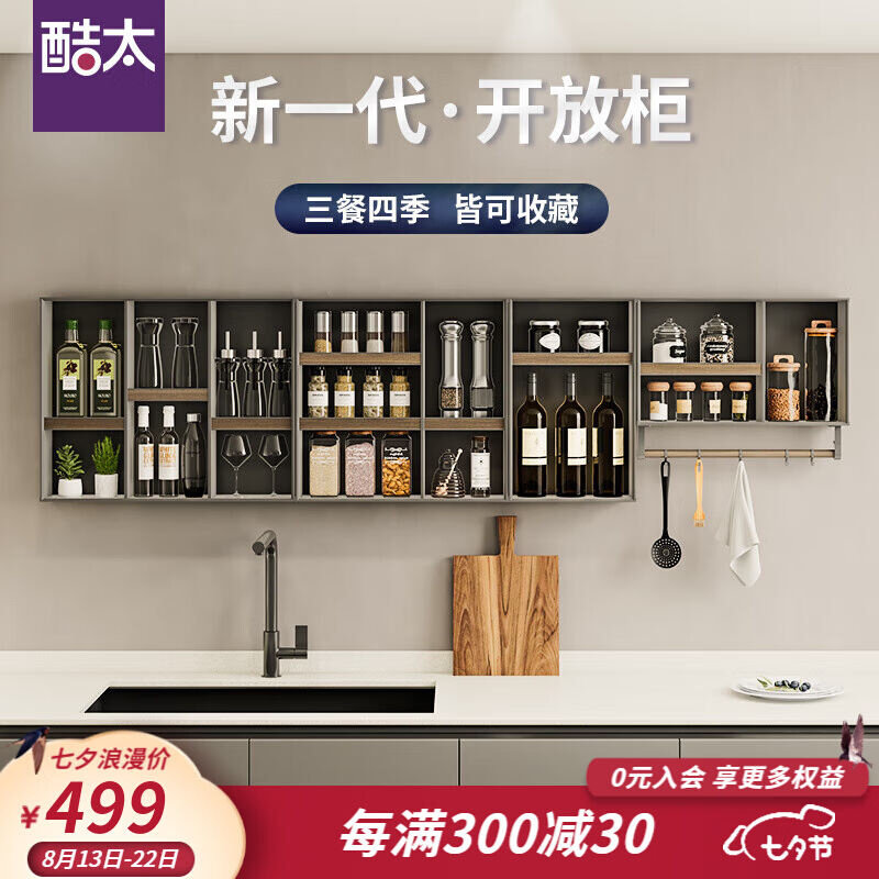 酷太厨房置物架壁挂式橱柜收纳储物架墙上开放柜餐厅墙面调料架子
