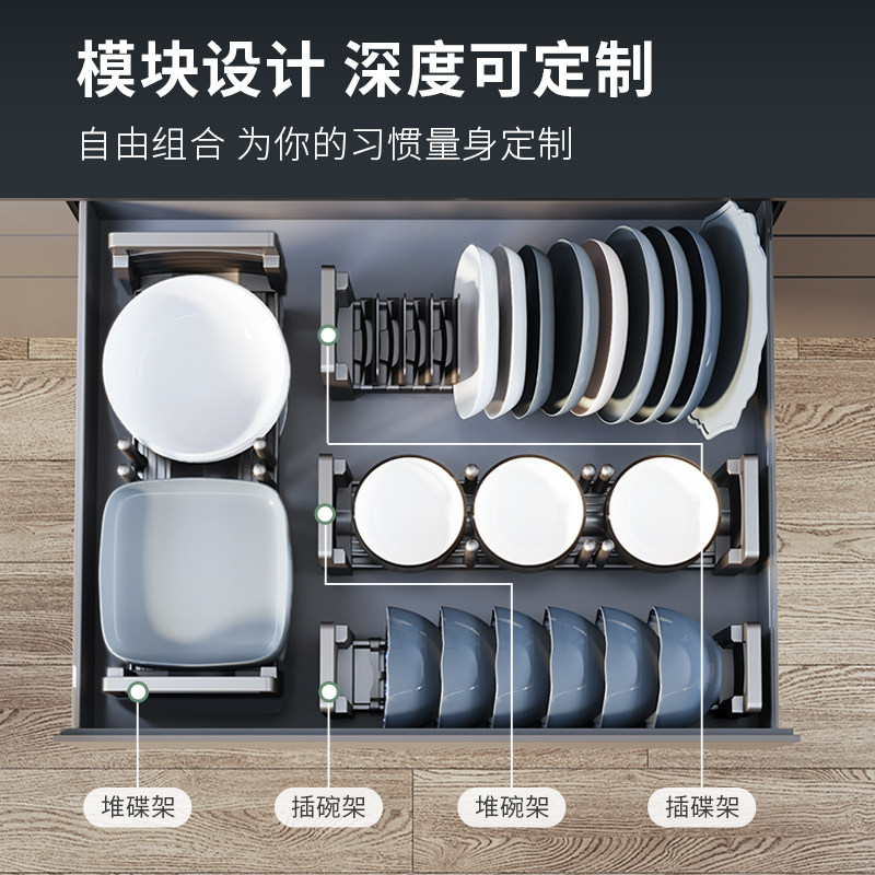 酷太厨房碗架抽屉内置碗碟收纳架厨房抽屉收纳分隔碗碟盘子置物架