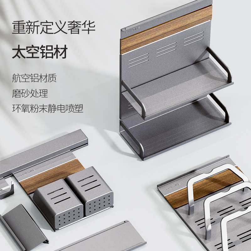 酷太厨房置物架锅盖架调料架太空铝收纳架沥水架免打孔多功能刀架
