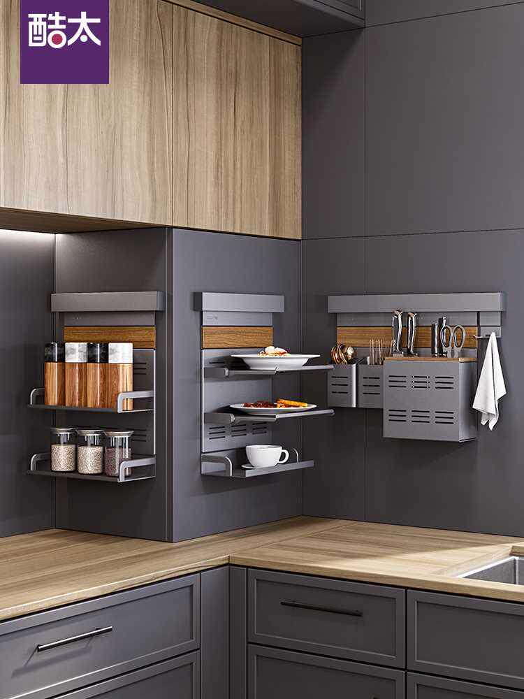 酷太孔厨锅房置物架免打挂件功能盖料刀架墙面架转角收纳调挂多架