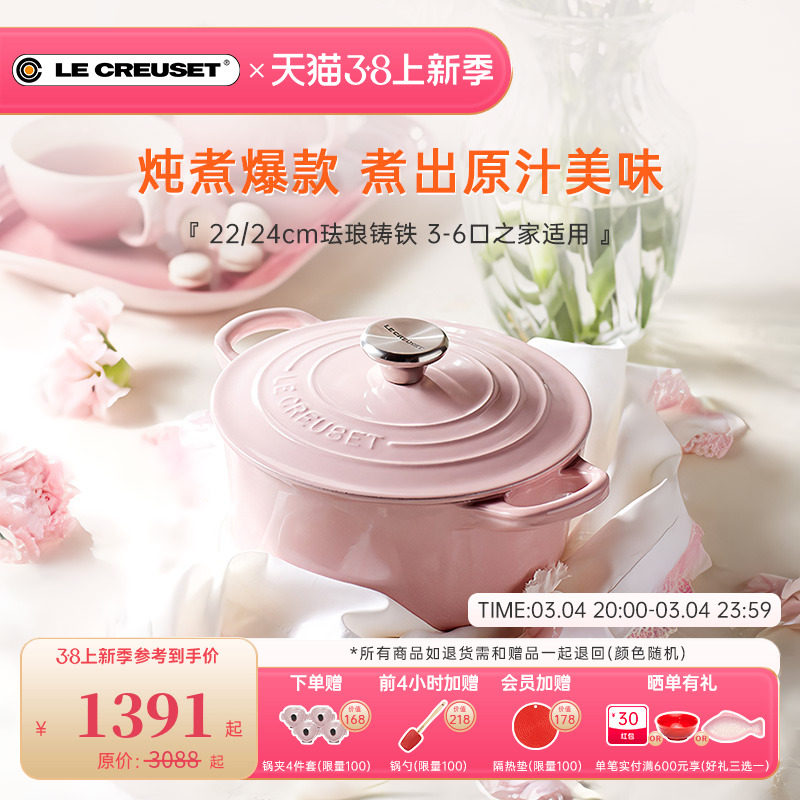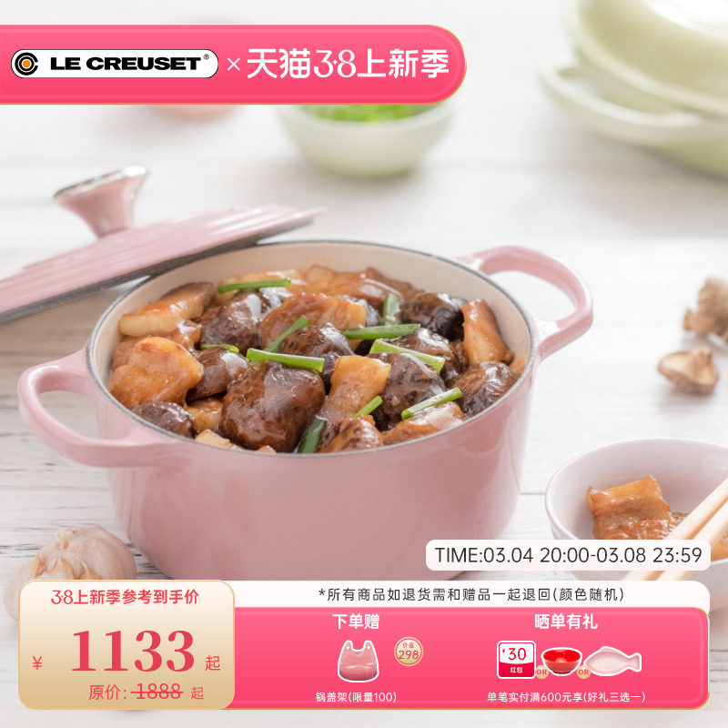 酷彩LE CREUSET法国进口珐琅铸铁锅S级圆形锅深烧锅多功能蔷薇粉