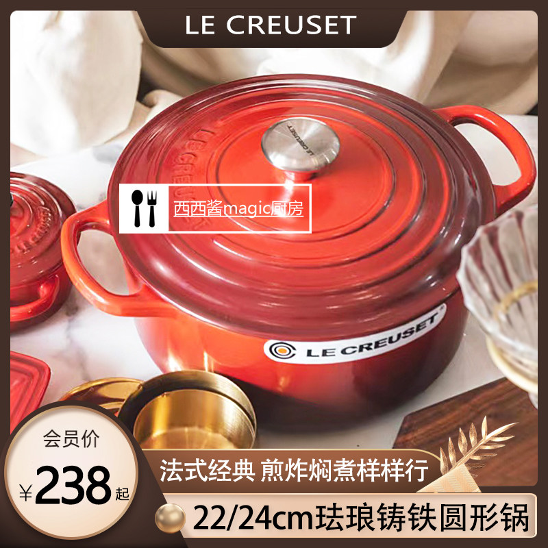 Le Creuset珐琅锅法国酷彩铸铁锅24cm圆形双耳炖锅家用焖烧锅煲汤
