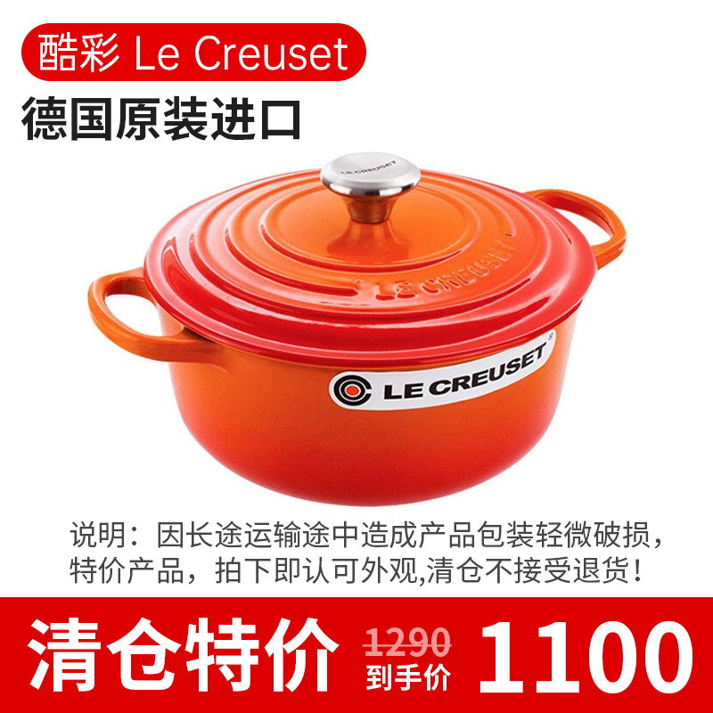 瑕疵德国原装进口 法国Le Creuset酷彩珐琅铸铁锅圆形活力橙22cm