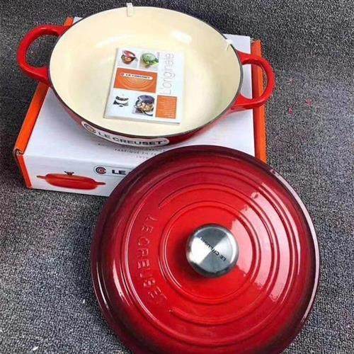 酷彩lecreuset海鲜锅白珐琅铸铁锅焖平底煎锅炒锅不粘锅鱼锅