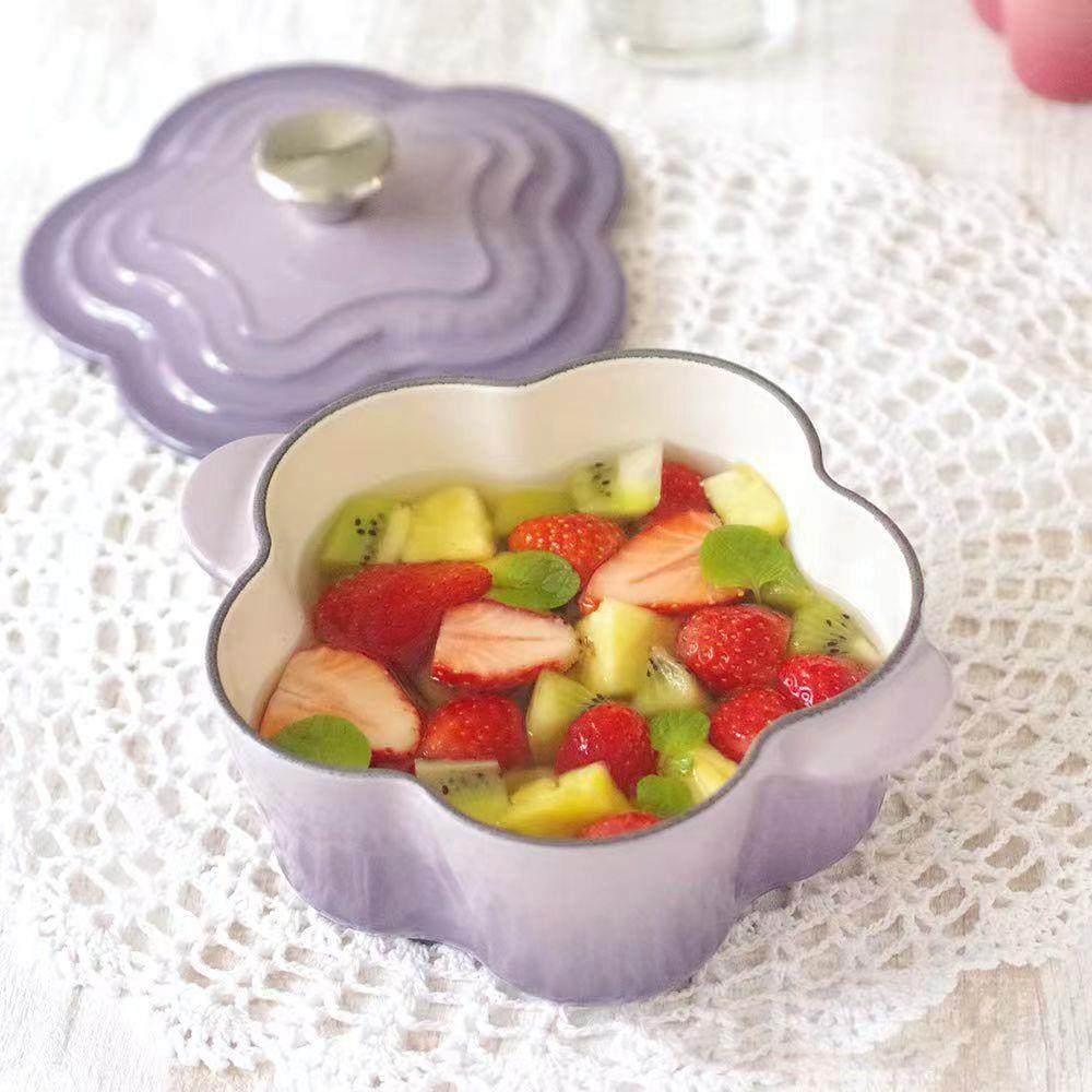 法国酷彩LC花朵锅铸铁珐琅锅20cm花瓣炖汤锅宝宝辅食家用小锅焖烧