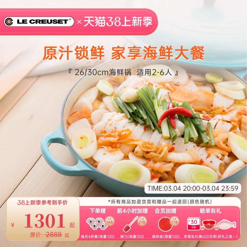 法国LE CREUSET酷彩26cm珐琅铸铁锅海鲜锅家用平底锅焖烧锅煎锅