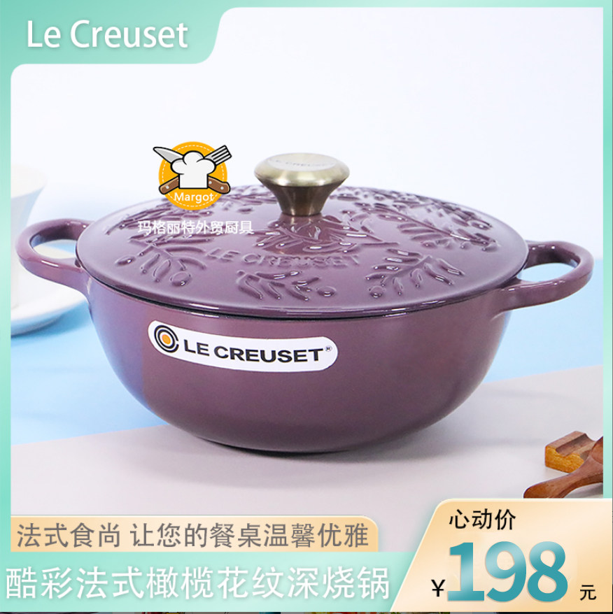 法国Le Creuset酷彩橄榄花边妈咪锅深烧锅黑珐琅铸铁锅炖锅炒锅煲