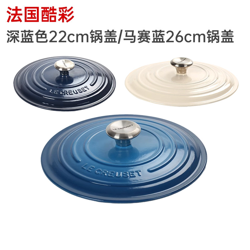 酷彩LE CREUSET法国珐琅铸铁锅22/26cm深蓝/马赛蓝锅盖 单个锅盖