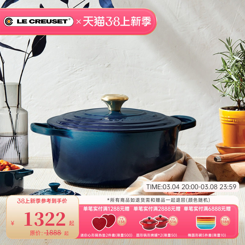 法国LE CREUSET酷彩珐琅铸铁锅 养生锅 饭釜锅隔水煲汤炖锅煲仔饭