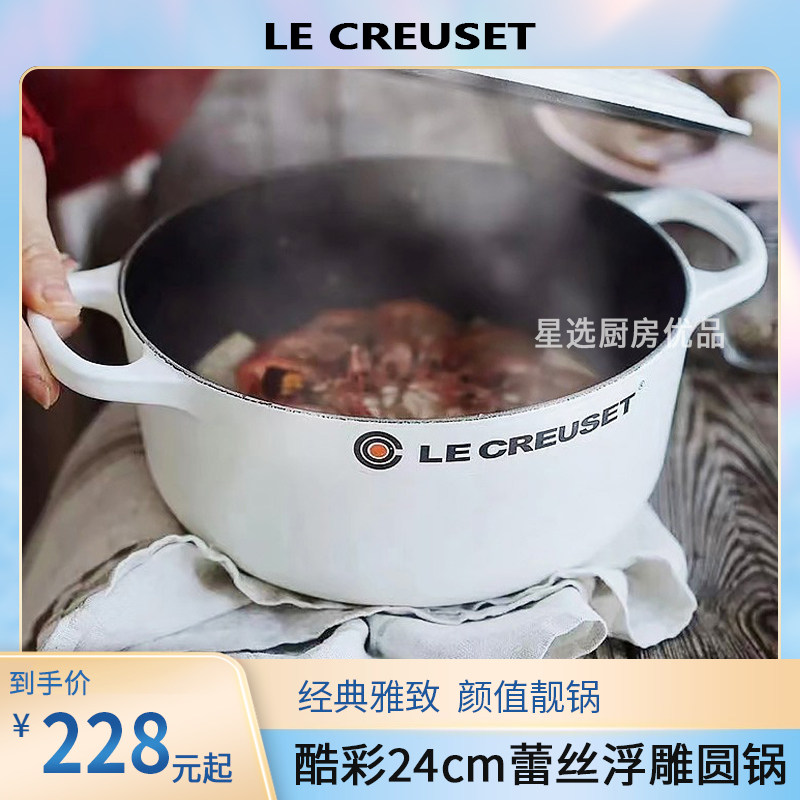 LE CREUSET 法国酷彩珐琅铸铁锅炖锅煎炒锅 浮雕系列圆形锅珐琅锅