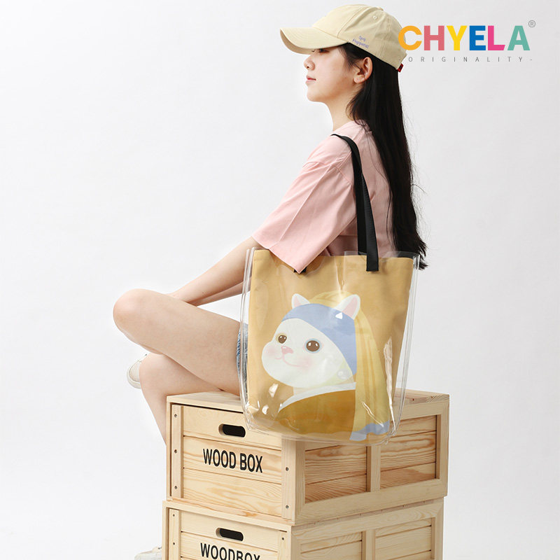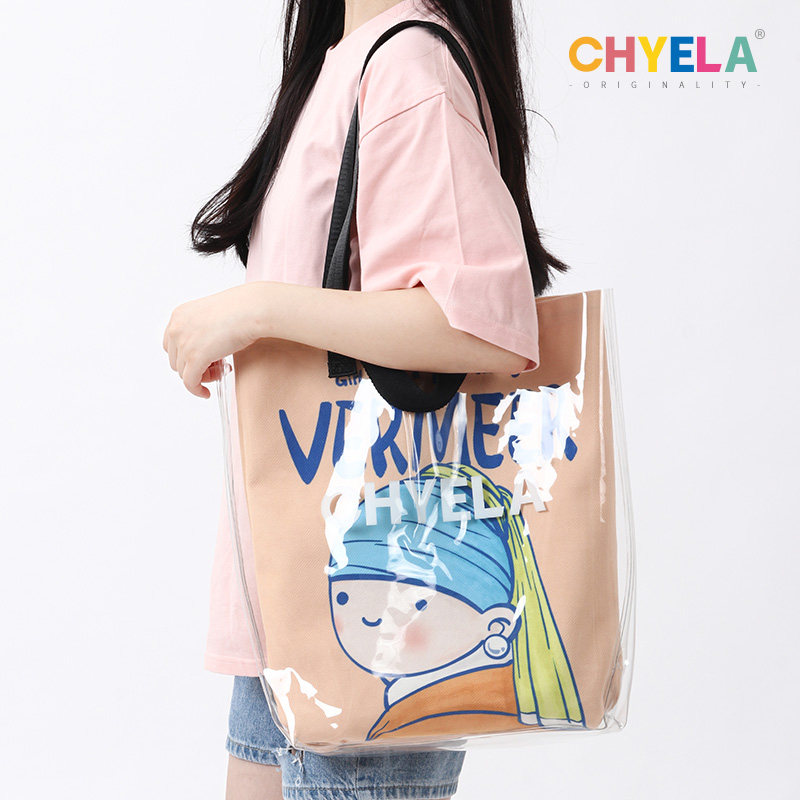 戴珍珠耳环的少女原创手绘透明果冻包diy定制图案帆布袋单肩AB172